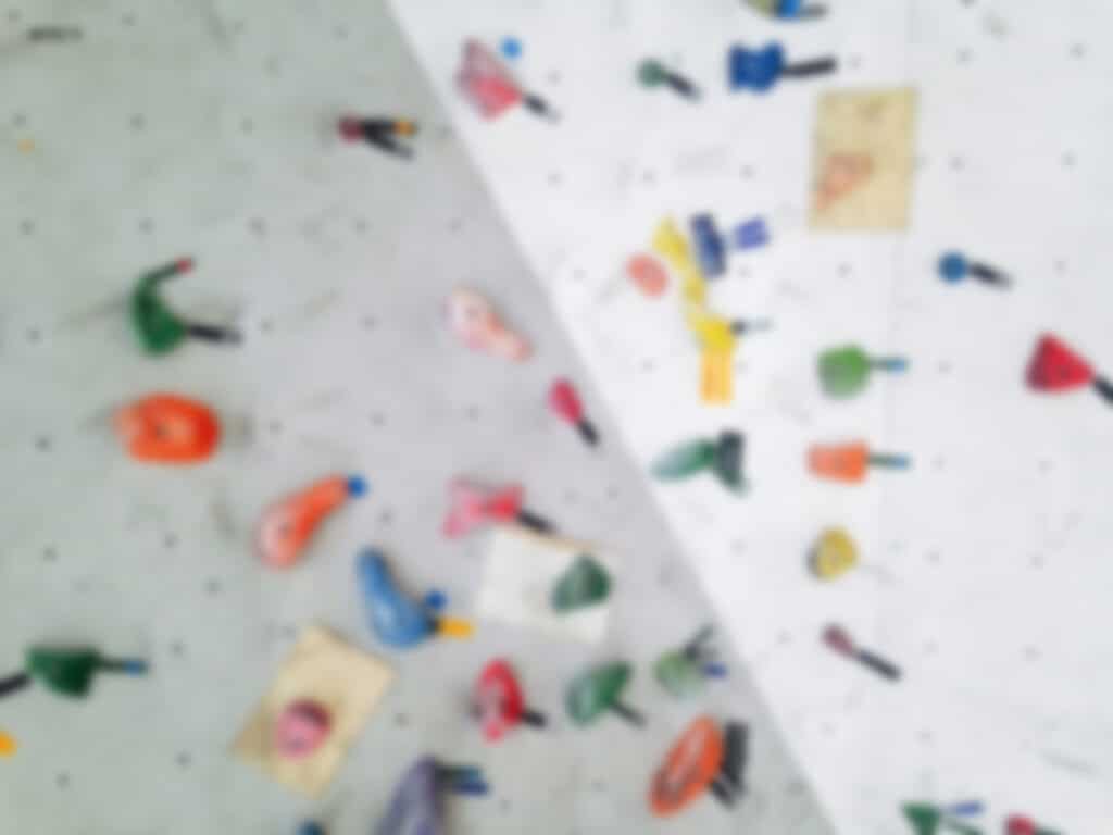 girl rock climbing one handed
